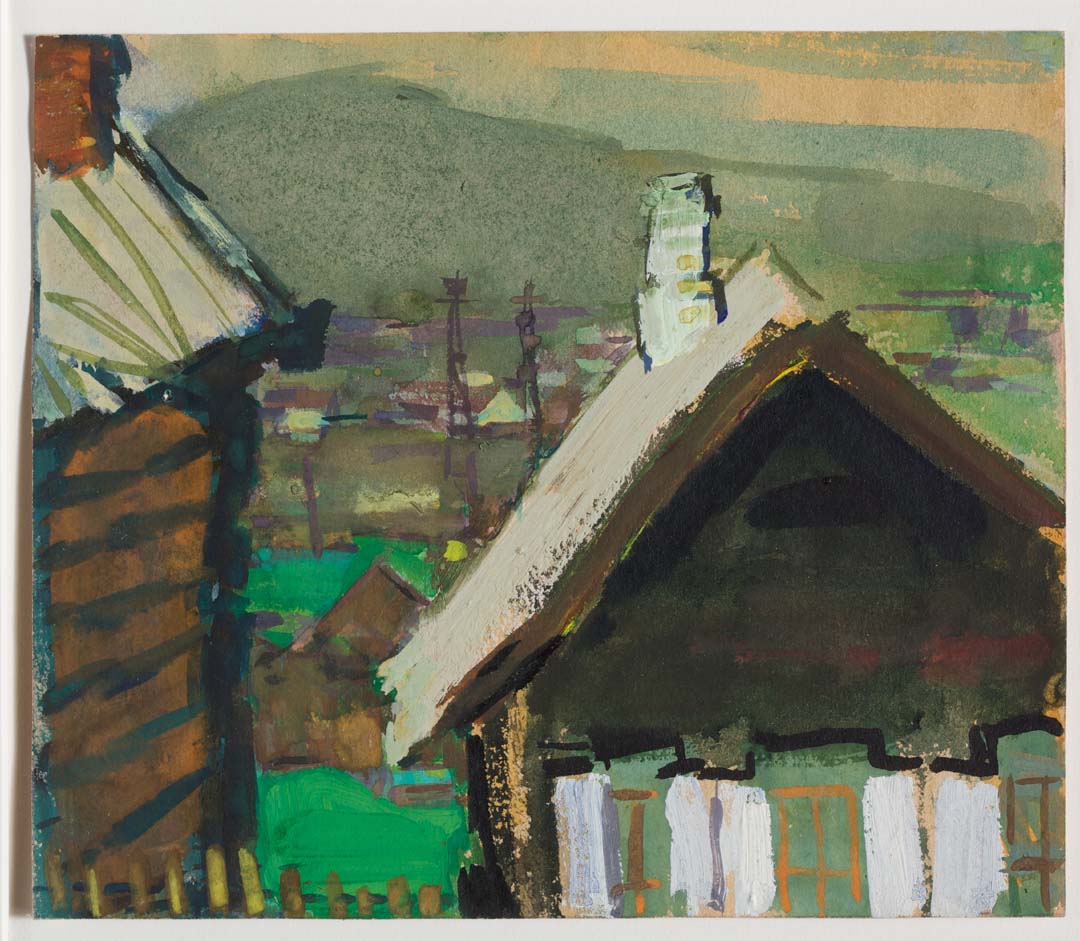 Roofs of Industrial Town, Nizhny Tagil, 1958. Gouache and watercolor on paper, 8 x 9 inches