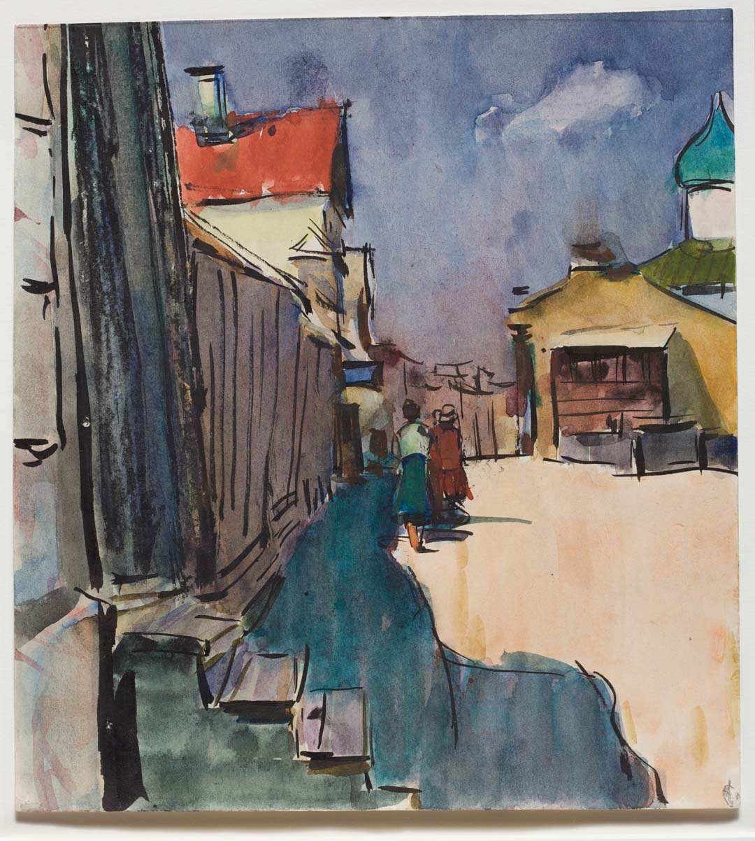 Streets of Pskov (?), ca. 1956-1957. Watercolor on paper, 8 3/4 x 7 7/8