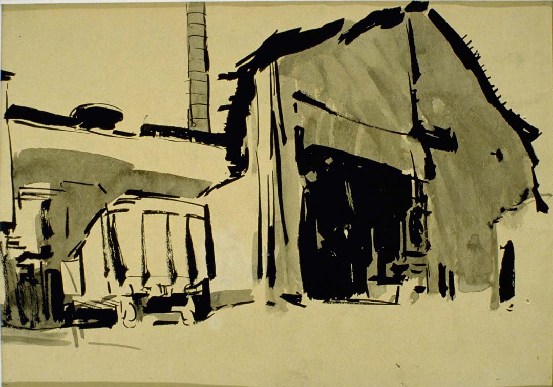 Industrial Plants of Nizhny Tagil, Nizhny Tagil, 1958. Ink on paper, 7 3/4 x 12 inches