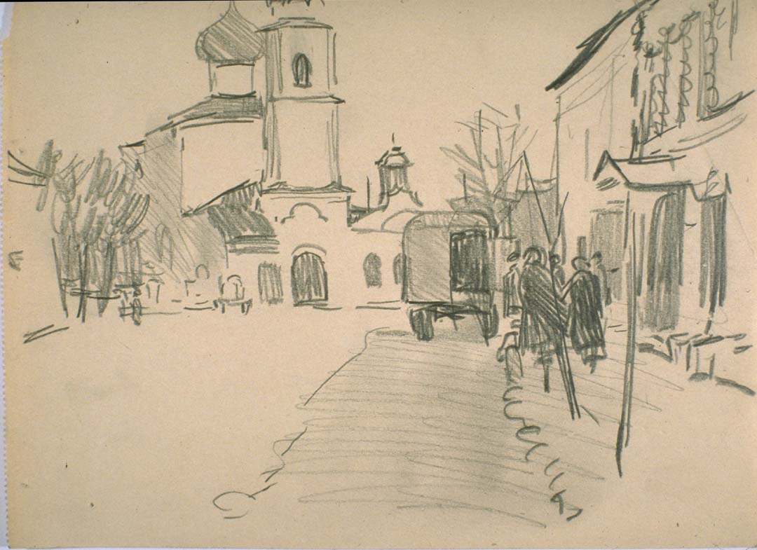 Pskov, 1956–57. Pencil on paper, 7 5/8 x 10 1/2 inches