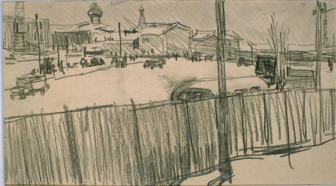 Pskov series, 1956–57. Pencil on paper, 6 1/8 x 11 inches // 16 1/4 x 20 1/4 inches framed dimensions