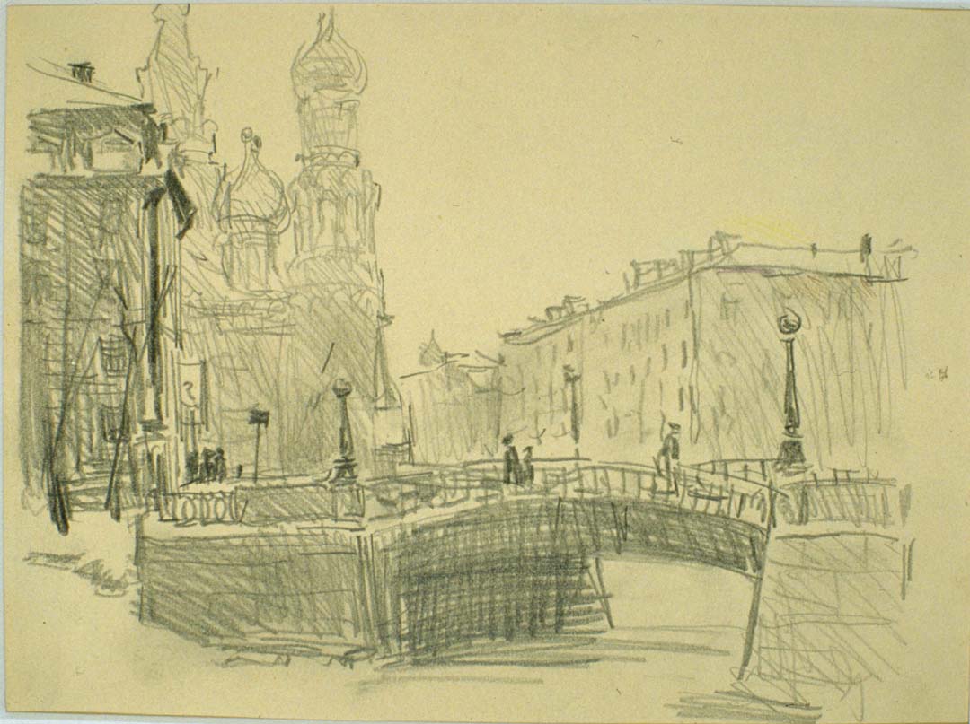 Griboedov Channel, Leningrad. 1946. Pencil on paper, 7 3/4 x 10 ½ inches