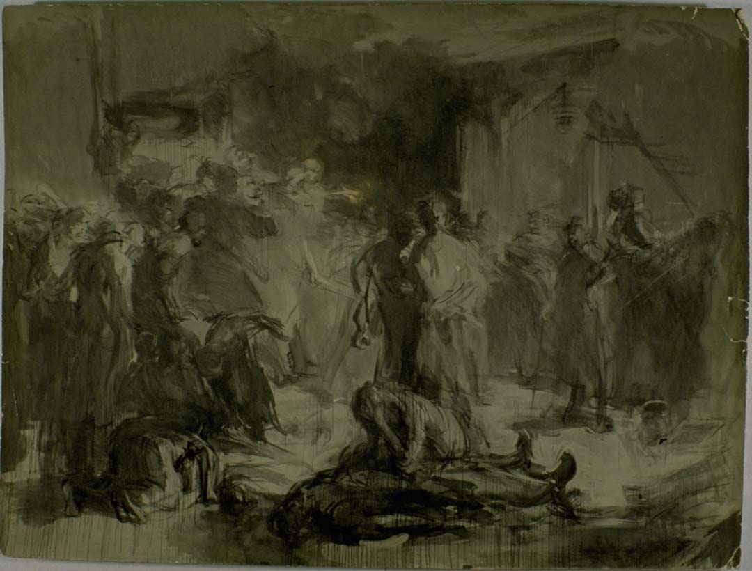 Study for Strike at the Urals Plant, graduate thesis at the Academy of Art, 1938-41. Whereabouts unknown